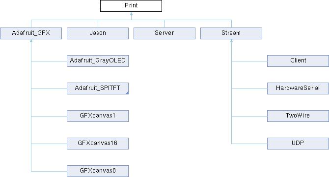 Adafruit_GFX Jason Server Stream Adafruit_GrayOLED Adafruit_SPITFT GFXcanvas1 GFXcanvas16 GFXcanvas8 Client HardwareSerial TwoWire UDP