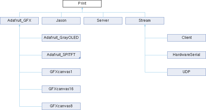 Adafruit_GFX Jason Server Stream Adafruit_GrayOLED Adafruit_SPITFT GFXcanvas1 GFXcanvas16 GFXcanvas8 Client HardwareSerial UDP